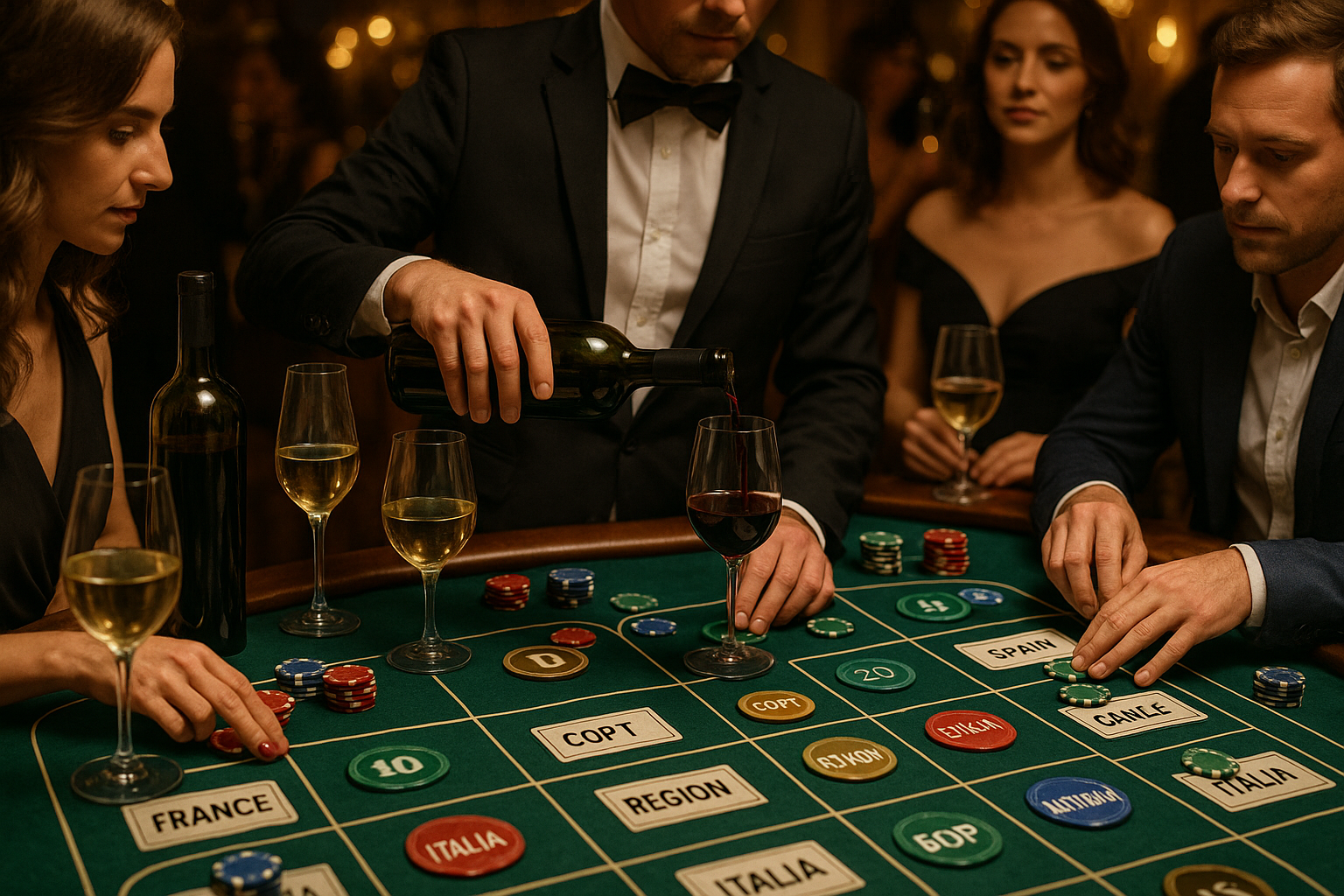 🎲 Винное казино — игровая зона, где участники делали ставки на ароматы, букет и сорт, соревнуясь за призы и сертификаты.